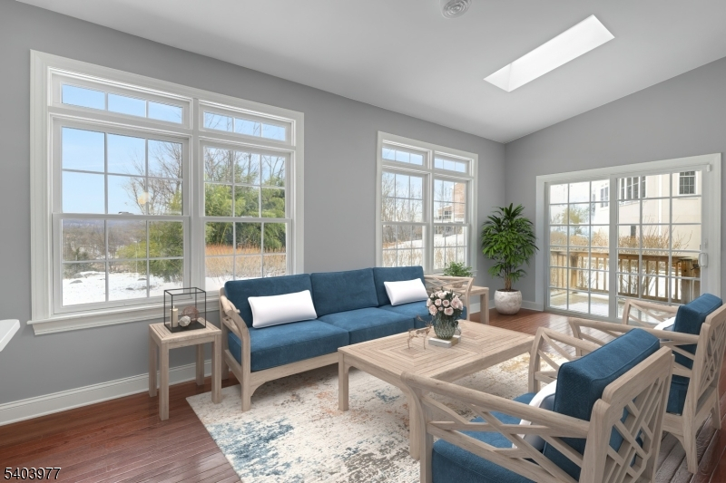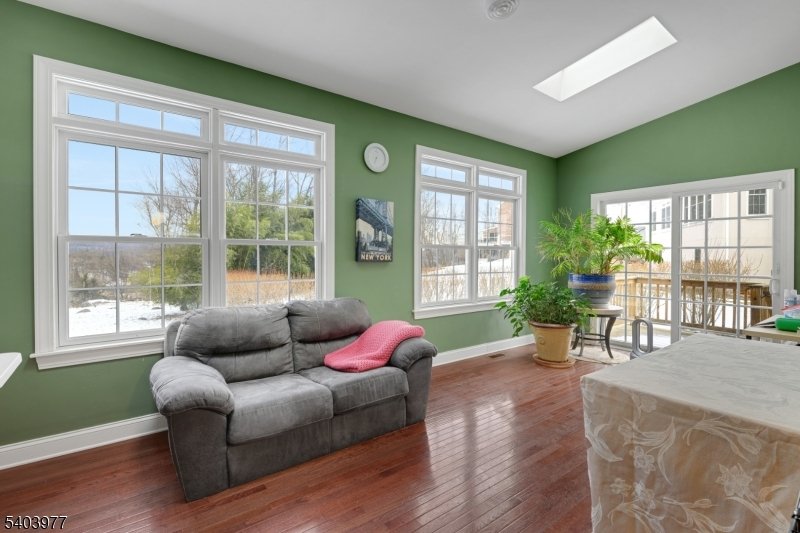 Welcome to 9 Skyview Terrace, Riverdale, NJ " THE Premier Location in Town!Exceptional home perfectly positioned in Riverdale's most exclusive cul-de-sac, offering privacy and stunning mountain-top views.Grand 2 story foyer - natural light floods the open floor plan on the main level. The 1sr floor showcases 9-foot ceilings throughout, the great room impresses with 10-foot ceilings. The kitchen and great room sit side by side, creating the perfect space for entertaining. This level features a sunlit living area, a bedroom, and a stunning solarium that frames breathtaking mountain views, all complemented by a sophisticated dual staircase that adds architectural elegance.Upstairs, the primary suite is nearly 1,000 sq.ft., a true retreat with cathedral ceilings, a sitting room, walk-in closets, and a luxurious en-suite bath. Three additional bedrooms and two additional baths complete the upper level, providing ample space for family and guests. The walk-out lower level offers more than 1,500 sq. ft. of beautifully finished space, featuring 6 versatile rooms designed for flexible living. Options include a bedroom, theater room, gym, office, playroom, + a full bath and kitchenette, making this level ideal for an in-law suite, private guest quarters, or the ultimate entertainment hub.Set on a flat, wooded lot, this home offers rare privacy. At the same time, it provides unbeatable convenience for commuters, just moments from Rte 287, 80 & 23. - 17 rms on 3 flrs.
