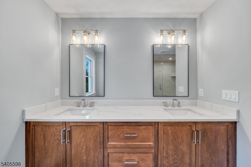 Unparalleled all new construction designed for today's lifestyle and set on a quiet double cul-de-sac buffered by wooded views! Just moments from town, train, shops, dining, & Ramsey's top-rated schools! Approx 3700 SF of perfection, this home blends exceptional craftsmanship with space, location & flair! The spacious Living Room features a gas fireplace plus custom built-ins & trim. The multipurpose Gathering Room - kitchen/dining/family room space boasts exposed beams, state-of-the-art appliances, large center island & impressive extras. A wall of windows overlooks an all newly designed landscaped & private rear yard. The adjacent mudroom includes custom bench seating, shiplap trim, closet, door to patio & yard plus access to the oversized garage. Powder Rm off foyer. Upstairs the primary suite retreat is accented by millwork detail, walk-in closet, private bath with glass shower & tiled artistry. The 2nd en-suite bedroom enjoys its own private full bath & WIC while 2 additional spacious bedrooms share the beautiful hall bath. The hallway staircase leads to the BONUS distinctive 3rd floor, providing fabulous flex space for family rm/play rm, home office, or guest retreat. Built by renowned & respected local builder & craftsman known for exceptional attention to detail, this special home is accented by rich wood floors, 9 foot ceilings, recessed lighting, 2 staircases, oversized windows & the peace of mind of everything brand new. A rare Ramsey opportunity not to be missed!