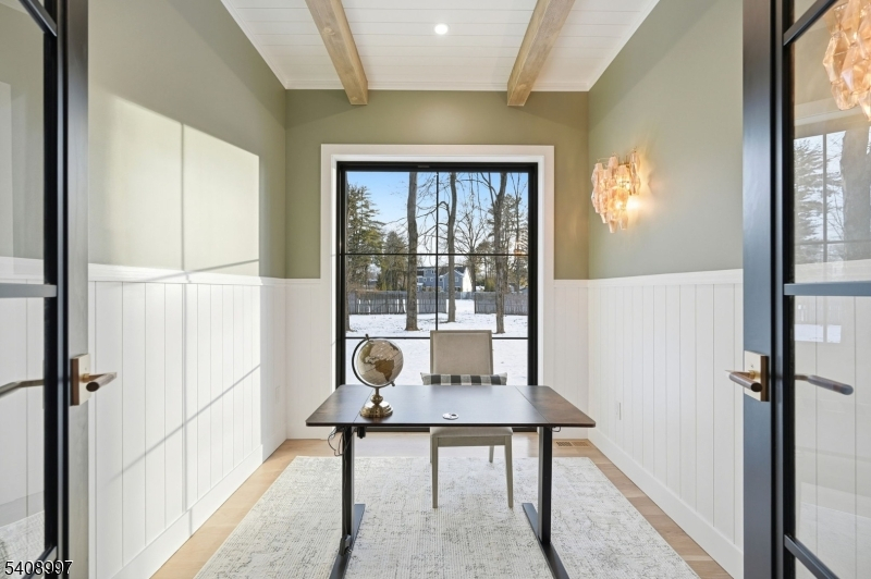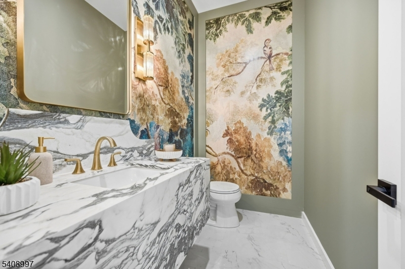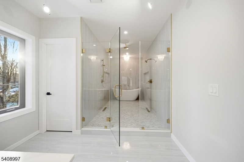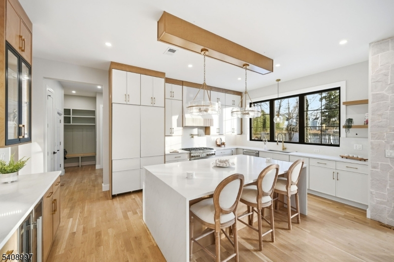 This exceptional new construction residence spans approximately 6,200 sq ft of refined living across three beautifully finished levels, set on a level 0.36-acre lot in one of Florham Park's most desirable neighborhoods. Ideally located just minutes from Route 24 and close to premier shopping, the home combines luxury with everyday convenience. A custom luxury-grade entry door introduces sophisticated craftsmanship throughout. The grand two-story foyer is flanked by formal living and dining rooms, creating an elegant backdrop for entertaining. The sun-drenched family room, anchored by a gas fireplace, flows seamlessly into the chef's kitchen featuring premium panel-ready appliances, an expansive quartz island, quartz backsplash, walk-in pantry, bar area, and bright breakfast nook. Glass doors open to a patio and spacious backyard for effortless indoor-outdoor living.The main level includes a private en-suite bedroom with walk-in closet, dedicated home office, powder room with Carrara marble vanity, mudroom, and direct access to the two-car garage. Upstairs, four en-suite bedrooms include a luxurious primary suite with dual walk-in closets, private sitting area, and spa-inspired bath, along with a convenient laundry room. The fully finished lower level offers a recreation room, media lounge, additional office, bedroom, and full bath. Custom millwork and designer lighting complete this distinguished home.
