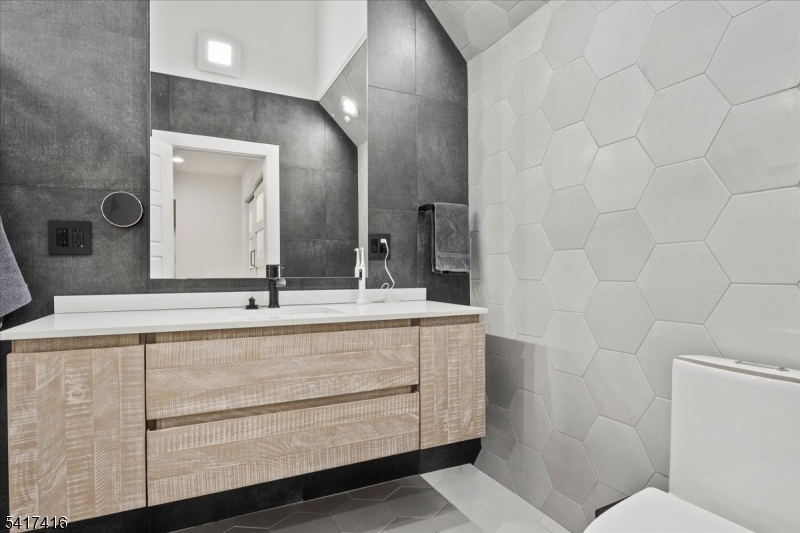 Elegantly designed Contemporary masterpiece showcasing exceptional craftsmanship and impressive scale throughout. A dramatic two-story entry foyer opens to a professionally designed curved glass staircase. Continue onto a soaring two-story living room with cathedral ceilings and an elevator that leads directly up into your 1400 sqft resort style primary suite. Custom moldings and quality hardwood floors enhance the home's refined character. The oversized, state-of-the-art eat-in kitchen is equipped with custom cabinetry, granite countertops, a 20ft. center island with sink, top-of-the-line appliances, a spacious breakfast area, butler's pantry, and built-in glass wine rack. Sliding glass doors lead to a private backyard with deck, ideal for indoor-outdoor entertaining. The expansive finished basement offers a second living space, bedroom suite, laundry room, and walk-out directly to backyard. Meticulous attention to detail throughout. Offering roughly 10,000 square feet of gracious living space, this exceptional residence is ideally located in the highly desirable neighborhood of Livingston, NJ.