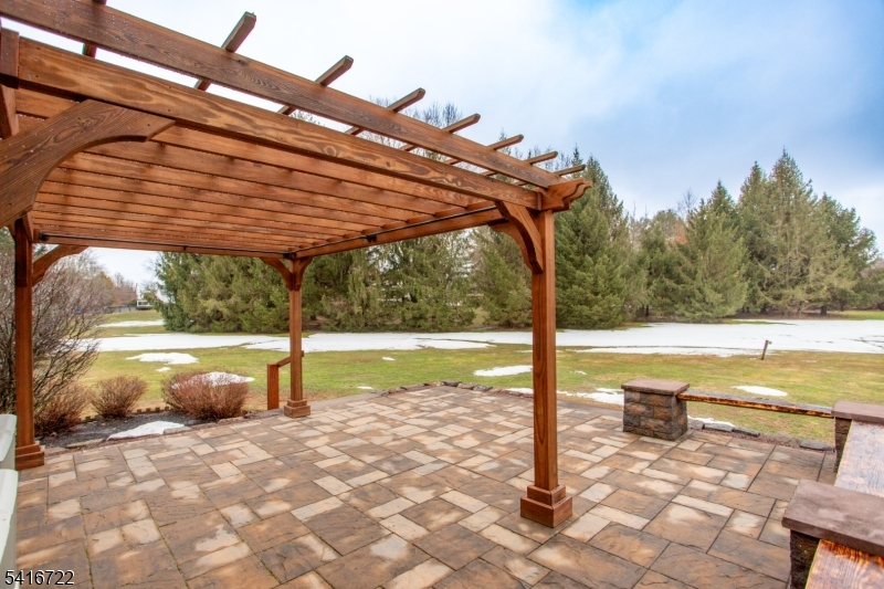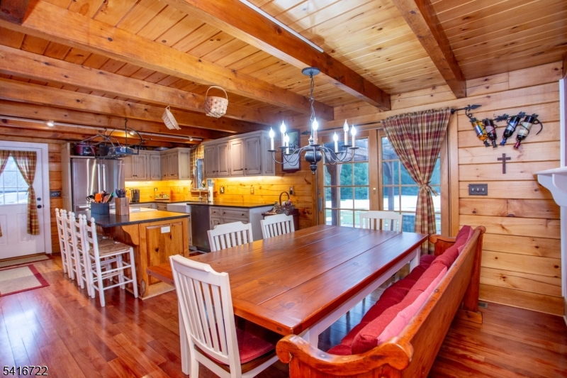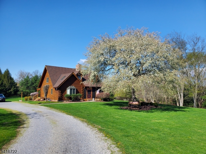 Set on over five acres, this handsome log home offers a flexible floor plan and great upgrades. Just minutes to Stockton, it is ideally located between Lambertville and Frenchtown. A paver walkway leads to the front door where you enter into a beautiful screened-in porch with floor to ceiling windows and sunset views. The living room features a vaulted ceiling, and a floor to ceiling stone fireplace with wood stove insert. Abundant windows allow for maximum natural light. A charming dining room with picture rail and exposed stone wall opens to the eat-in kitchen with granite counters, farmhouse sink, and abundant storage. A powder room and side door to the parking area add convenience. Sliding French doors beckon you outside to the beautiful stone patio. With terraced dry laid stone walls, built-in wooden benches, and pergola, this is the perfect place to watch the seasons change. Enjoy the versatility of a main floor primary bedroom with bright bay window, walk-in closet, and ensuite bathroom. Upstairs there are two more generously sized bedrooms and a full bathroom. The finished basement offers amazing bonus space and boasts a gas fireplace with stone surround, custom built-ins and millwork. Plus a sweet powder room and laundry room for added ease. A workshop with double doors opens to the backyard. Central air, central vac, and wood floors throughout. This fantastic property offers quiet country living, close to restaurants, markets, entertainment and more.