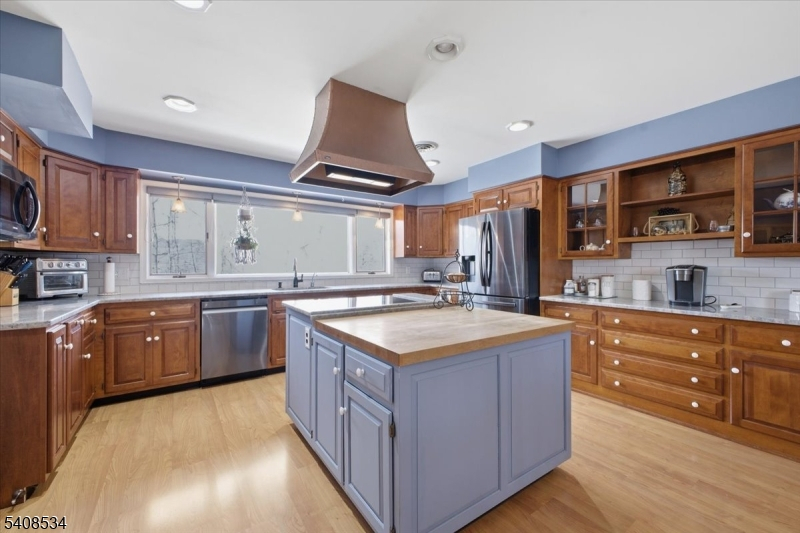There is something different about a property that gives you room to breathe. Set on over six rolling acres, this three-bedroom raised ranch offers the kind of space inside and out that changes how you live day to day.Cook real meals in a kitchen designed for it, with a large island and a copper stove hood that is as functional as it is beautiful. Dine with sliders open to a hardscaped patio on warm evenings. Settle into the living room around the fireplace when the seasons change. Everything on the main level, all three bedrooms, both baths, and the laundry room is laid out so that daily life just works. Below, the home keeps surprising: a family room for gathering, a yoga and exercise space for quiet mornings, and a workshop for whatever projects have been waiting. Two garages, one attached and heated, one freestanding with heat and air conditioning, handle the cars, the gear, and everything else.With a newer A/C system, central vacuum, security system, Blink cameras, a whole-house speaker system, a 100-yard gun range with rifle bench, and dual oil tanks mean the practical side of the home is just as well-considered as the rest. This is a property that has been genuinely thought through and it shows.