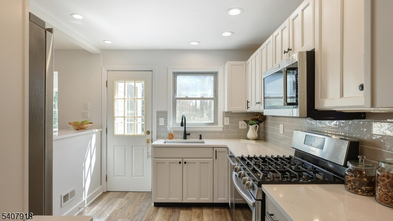 Step into a home where warmth, comfort, and thoughtful updates come together in perfect harmony. Newly refinished hardwood floors span the first level, reflecting natural light and creating a welcoming feel, while plush new w/w carpeting on the second floor adds softness and comfort. At the heart of the home, the updated eat-in kitchen blends style and function with Quartz countertops and breakfast bar (3/26), a subway tile backsplash (3/26), under-cabinet lighting, stainless steel appl, and new flooring ideal for both everyday living and entertaining. The living room offers timeless appeal with a wood-burning fireplace, brick surround, and built-in bookshelves, creating a cozy gathering space. The dining area has a corner cabinet, ideal for storage & there's a cozy den. Two 1st-floor bedrooms provide flexibility for guests, home offices, or addl living space. Upstairs, spacious bedrooms include a primary suite with a walk-in closet, jetted tub, and linen closet. All bathrooms are updated, and storage is plentiful with attic access in both the home and garage. Set on a beautifully landscaped, fully fenced 1/3-acre property, the outdoor space is as inviting as the interior. With new windows (3/26) and move-in ready condition, this home offers ease and peace of mind. Located in the sought-after McGinn Elem. School district, moments from parks, downtown Fanwood & 1/2 mi. walk to the NYC train/bus access, this home offers the perfect blend of comfort, convenience, and lifestyle.