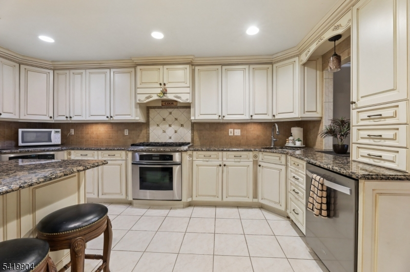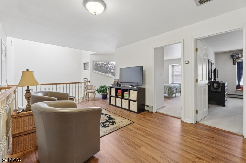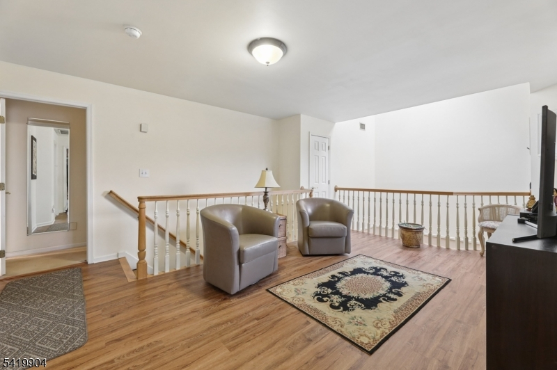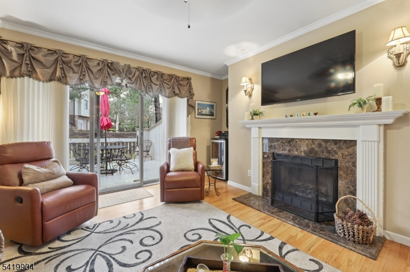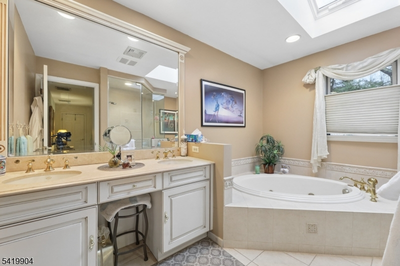 Mountain Shadows of Franklin Lakes-a 64 unit private townhouse community with pool, tennis/pickleball! This large Woodland Model consists of 3 Bedrooms. 2.5 baths, loft, full finished basement and 2 car garage. Recently upgraded kitchen with custom white cabinetry, granite tops, island pantry, 2 full size Thermador ovens and Viking 6 burner cooktop. Family room with wood burning fireplace and sliding glass doors to deck. Dining area opens to Kitchen and Formal LR/DR with hardwood floors, 2 story entry foyer with skylight and powder room. 2nd level opens to a den/office, 3 bedrooms, full bath with tub & laundry room. The primary suite features a walk-in closet, full bath with oversized steam stall shower, jacuzzi tub, double sink marble vanity and sky light. Lower Level provides additional living space with a rec room, card room, french doors to gym/office and storage closets. Close to NYC transportation, shopping, middle school, houses of worship and Franklin Lakes Rec Center with new playground, rec field and jogging paths to library.