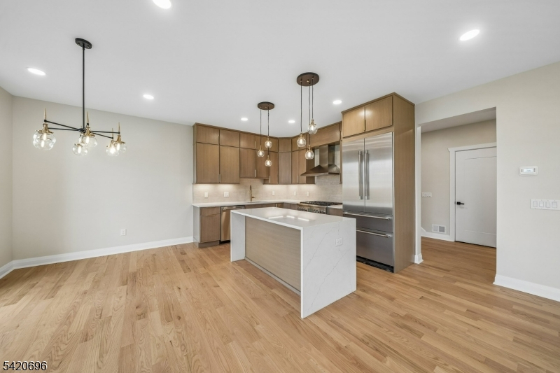 Welcome to Central Villas, a refined end-unit townhome in the heart of New Providence, & a seamless blend of modern design & effortless living. Built by Summit General Construction, this 4-level residence spans approx. 4,450 sq ft, offering 4 bedrooms, 5 full baths, & a versatile 1st-floor office or optional 5th bedroom.Designed for modern living and effortless entertaining, the home features hardwood flooring throughout. The main level showcases a striking living area anchored by a sleek gas fireplace, while the formal dining area opens to a private backyard patio, creating seamless indoor-outdoor flow.The chef's kitchen offers custom cabinetry, a waterfall island, premium Thermador appliances, & a pantry just off the garage entry,a coat closet.The 2nd floor features 3 bedrooms each with a Walk In Closet., & the primary suite offers a tray ceiling & spa-like bath with soaking tub, frameless glass shower, & designer vanities. A full hall bath & laundry complete the level.The top floor offers a sunlit, private suite with soaring ceilings, an en-suite bath, & generous storage, perfect for guests, work, or quiet retreat.The finished lower level adds even more living space, with porcelain tile flooring, decorative wall paneling, a modern electric fireplace, & a full bath ideal for a media lounge, recreation area, or home gym. Additional highlights include a 2-car garage with 12-ft ceilings, EV charger, energy-efficient systems, smart keyless entry, & a 10-year builder warranty.