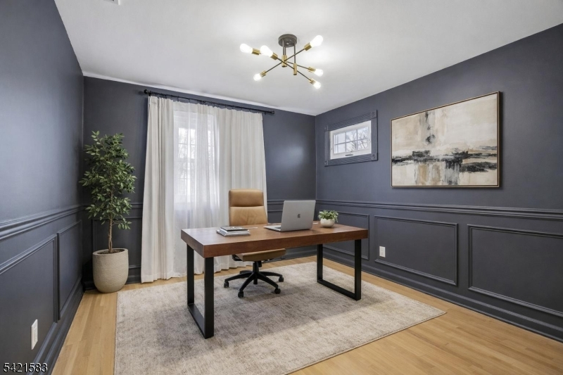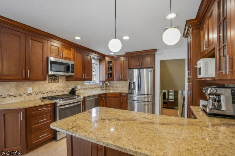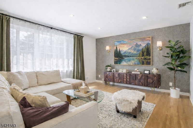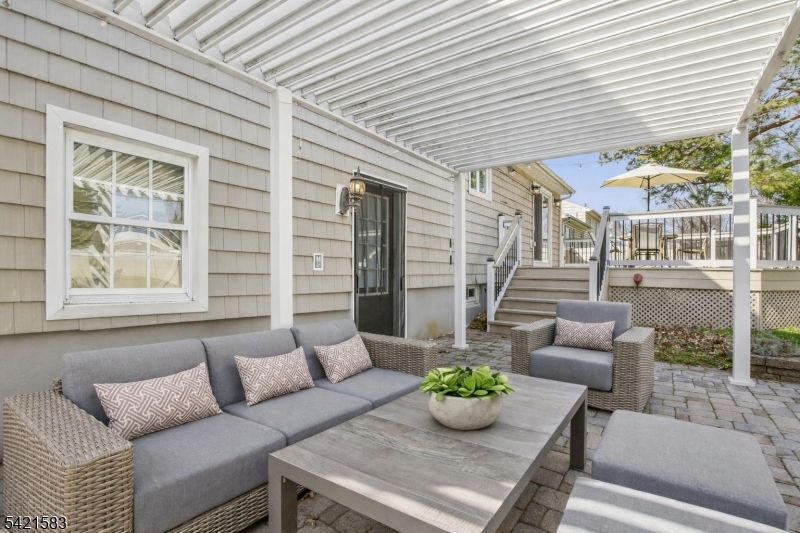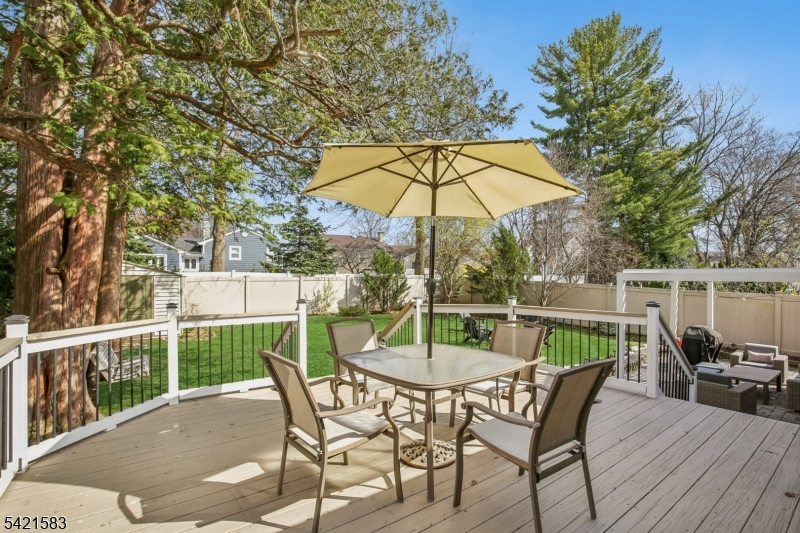 Located in the highly sought-after Garden Oval, this beautiful split-level home offers great curb appeal, modern updates, and a park-like setting. Step inside to find a bright and inviting living room that flows seamlessly into the formal dining room. The dining room leads to a large deck overlooking a fully fenced backyard with firepit and a patio below. Upstairs are three bedrooms including a primary suite with a walk-in closet and bathroom. The ground level includes a family room with access to the two-car garage and backyard, while the basement provides ample storage and laundry. Recent upgrades include smart garage openers, EV charger, security cameras, outdoor electrical outlet, smart smoke & carbon detectors, and a built-in outlet for a Frame TV.Ideally situated near premier shopping, transportation, and major highways enjoy easy access to local grocery stores, shops, and NJ Transit all within 10 minutes. This turnkey Garden Oval residence combines comfort, style, and smart enhancements with spacious living areas and a serene outdoor setting, all in a location that makes commuting and everyday errands effortless.