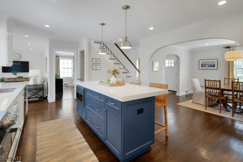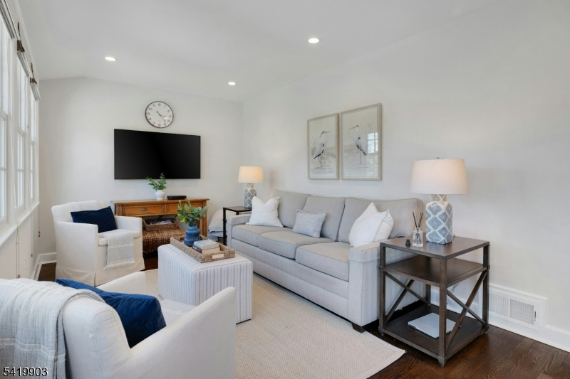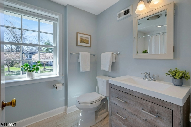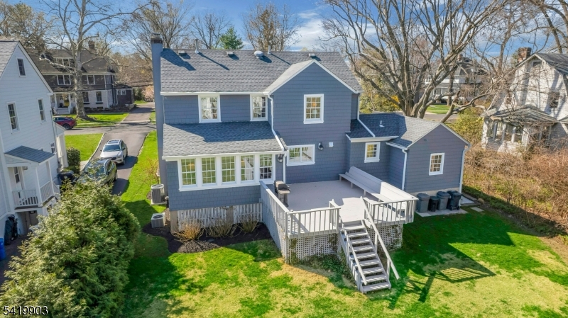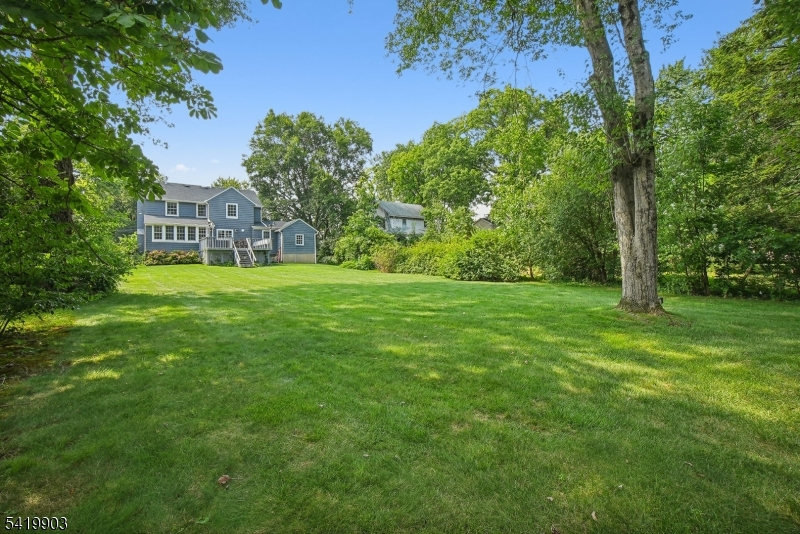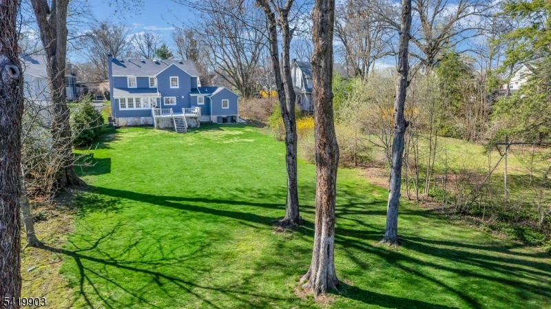 This timeless 3 BR, 2.1 bath Colonial is ideally located on what is widely considered one of the most desirable streets in the Manor Section and in all of Chatham Borough, just blocks to downtown, top rated schools, restaurants, and Midtown Direct trains to NYC, approx .3 miles from the home. A classic center hall layout showcases a natural stone front exterior. Hardwood floors run throughout the first and second levels. The open floor plan is designed for today's living, with a beautifully renovated kitchen featuring quartz countertops, center island, and updated appliances, flowing into the dining area and den. The living room offers a wood burning fireplace, while the den is filled with natural light and opens to the deck. A mudroom with powder room and side entrance from the driveway adds convenience. The second level includes three bedrooms and two full baths, including a primary suite with ensuite bath and closet space, along with an updated hall bath. A walk up attic offers potential. The finished lower level features new luxury vinyl plank flooring and flexible space. Outside, the expansive, level backyard is truly beautiful, set on .43 acres with open lawn and mature trees creating a peaceful, park like setting with room for expansion. Additional highlights include two zone heating and central air, Andersen windows, and a one car garage with a newly installed garage door, along with exterior painting completed in 2025. Opportunities like this do not come along often.
