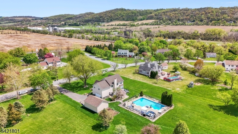 Stunning home set on a beautifully level, open lot, complete with a garden and charming chicken coop. Featuring 3 spacious bedrooms and 2.5 bathrooms, the home includes a luxurious primary suite with two walk-in closets plus two additional closets, and a private bath with a walk-in shower. Convenient upper-level laundry adds everyday ease. The main level showcases hardwood floors and an inviting layout. The dining room is enhanced with crown molding and chair rail detailing, while the kitchen boasts custom cabinetry, stainless steel appliances, granite countertops, an undermount sink, recessed lighting, a center island with breakfast bar, and a bright breakfast area. The impressive living room features a wood-burning fireplace with a brick surround and a dramatic two-story open design that fills the space with natural light from oversized picture windows. Step outside to enjoy a large composite deck overlooking the stunning in-ground pool, patio, and outdoor stone surround fireplace-perfect for entertaining or relaxing. The finished basement offers additional living space with new tile flooring, including a recreation room, family room, and ample storage. Car enthusiasts will appreciate the rare four-car garage, providing plenty of space for vehicles, hobbies, or workshop needs. This exceptional home combines style, space, and unique outdoor features. Public water, natural gas and newer furnace and AC (2020).