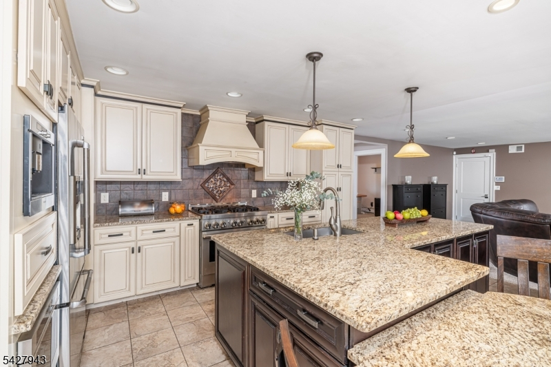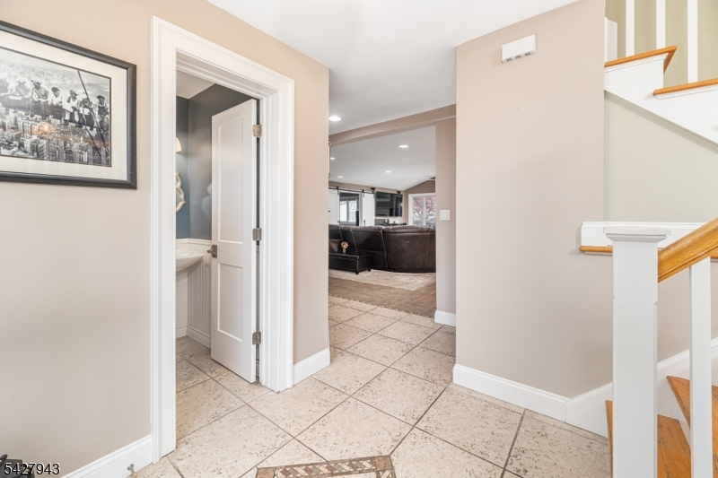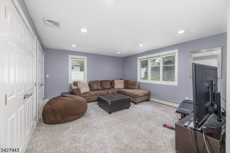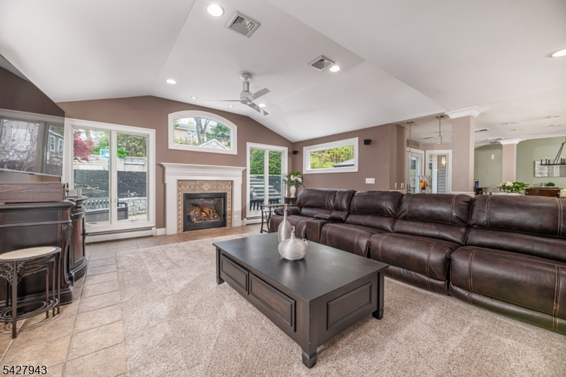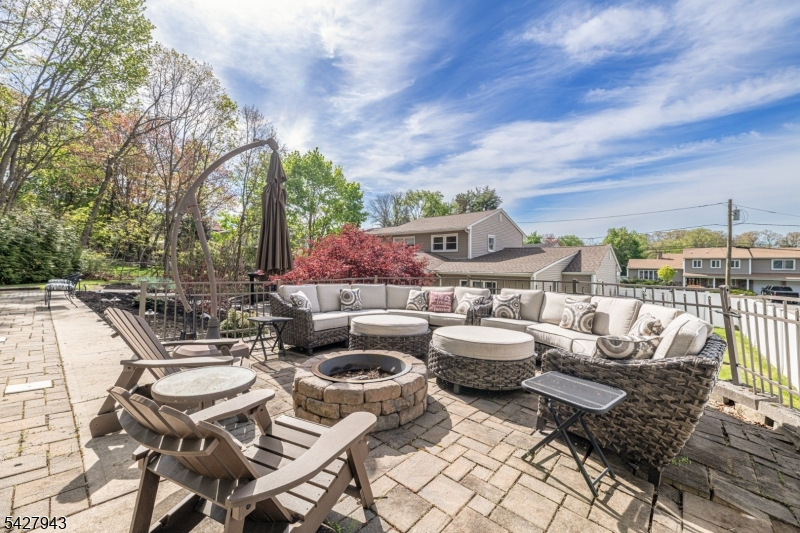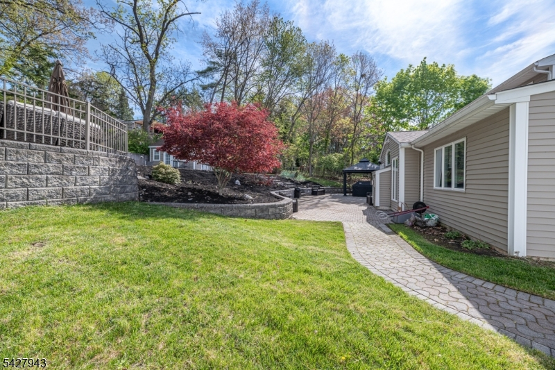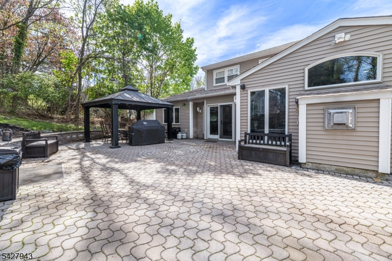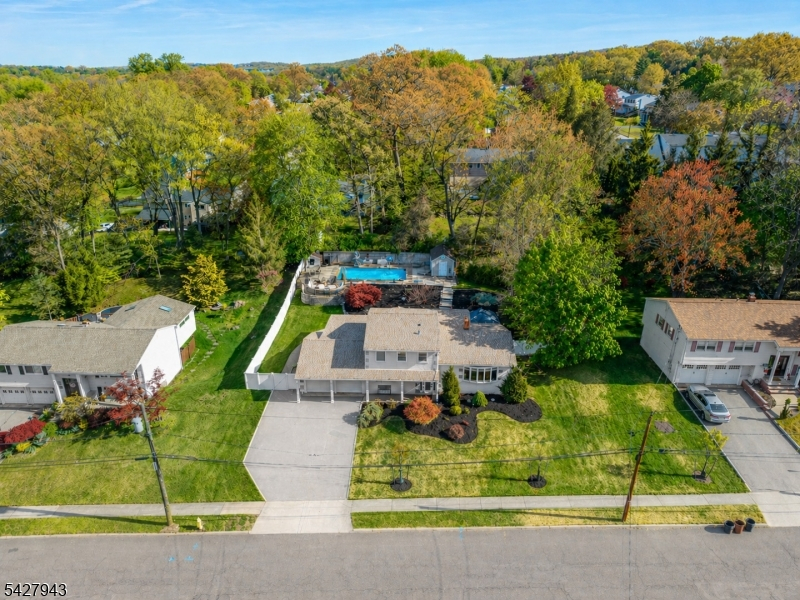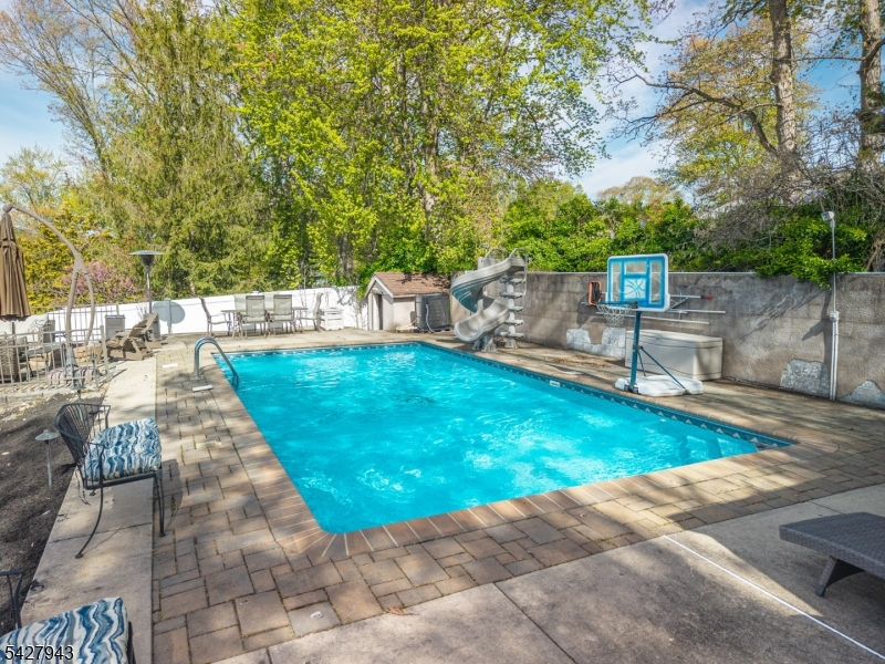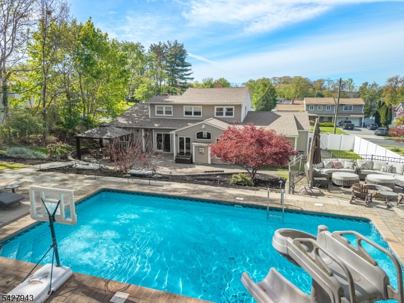 An entertainer's dream! With impressive curb appeal and a thoughtfully designed interior, this home blends elegance and functionality with a WOW factor inside and out. Offering 4 levels of living space, it features beautiful windows and custom moldings throughout. Step into the welcoming foyer and enjoy ground-level conveniences including a powder room, bedroom, office/den/playroom (or possible 5th bedroom), spectacular great room, gourmet kitchen with sliders to the backyard, and a spacious formal dining room. The eat-in kitchen boasts stainless steel appliances, a one-of-a-kind custom center island with seating, and high-end finishes, perfect for everyday living and entertaining. First floor, just steps from the ground level, is a sun-drenched, spacious living room with dry bar. Upstairs, the primary suite offers an en-suite bathroom with double vanity, step-in shower, & walk-in closet. Two additional bedrooms share a full bathroom. The backyard is a true retreat, featuring a two-level paver patio, heated in-ground pool with slide, cabana with fridge & storage cabinets, built-in fire pit & storage shed, ideal for summer gatherings. Additional highlights include a whole-house gas generator, hardwood floors, granite counters, recessed lighting, newer roof (3 years young), and a 2-car garage w/outside access and expansive driveway to accommodate 5 cars. Conveniently located near schools, shopping, houses of worship, major highways, & NJ Transit, this one checks all the boxes.