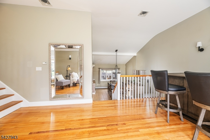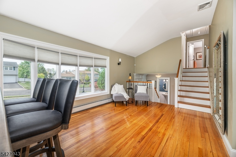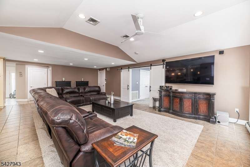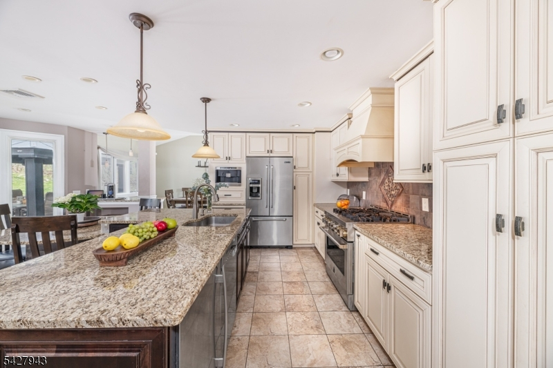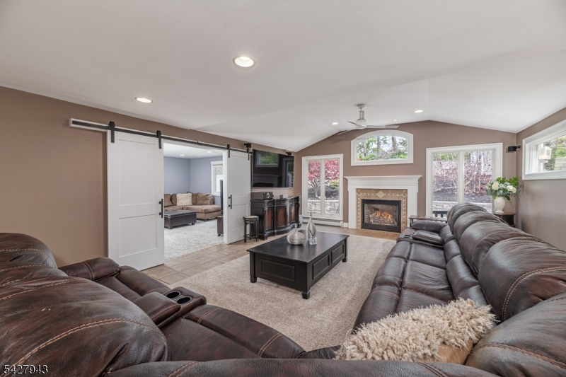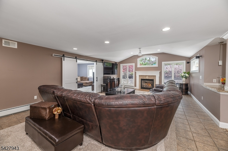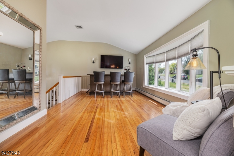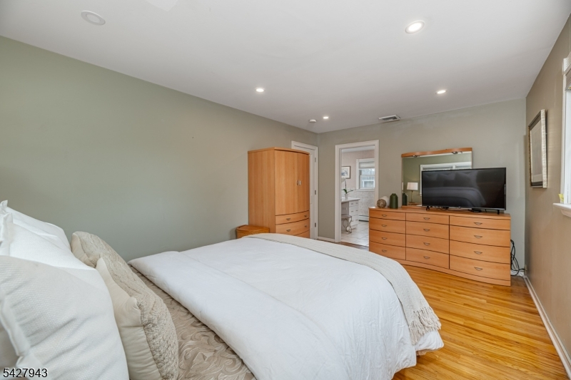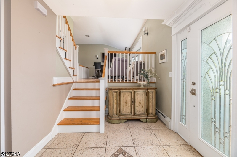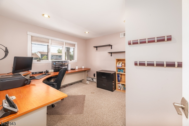 An entertainer's dream! With impressive curb appeal and a thoughtfully designed interior, this home blends elegance and functionality with a WOW factor inside and out. Offering 4 levels of living space, it features beautiful windows and custom moldings throughout. Step into the welcoming foyer and enjoy ground-level conveniences including a powder room, bedroom, office/den/playroom (or possible 5th bedroom), spectacular great room, gourmet kitchen with sliders to the backyard, and a spacious formal dining room. The eat-in kitchen boasts stainless steel appliances, a one-of-a-kind custom center island with seating, and high-end finishes, perfect for everyday living and entertaining. First floor, just steps from the ground level, is a sun-drenched, spacious living room with dry bar. Upstairs, the primary suite offers an en-suite bathroom with double vanity, step-in shower, & walk-in closet. Two additional bedrooms share a full bathroom. The backyard is a true retreat, featuring a two-level paver patio, heated in-ground pool with slide, cabana with fridge & storage cabinets, built-in fire pit & storage shed, ideal for summer gatherings. Additional highlights include a whole-house gas generator, hardwood floors, granite counters, recessed lighting, newer roof (3 years young), and a 2-car garage w/outside access and expansive driveway to accommodate 5 cars. Conveniently located near schools, shopping, houses of worship, major highways, & NJ Transit, this one checks all the boxes.
