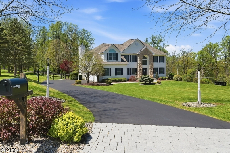 Exceptional Center Hall Colonial with awesome views and a Valley location! This home is set above the street on a 3 plus Acre lot. The 1st floor offers wood floors, 9ft ceilings with a 2 story foyer and cathedral ceilings in the family room. The updated kitchen offers quartz counter tops, tiled back splash and stainless appliances. The kitchen opens to the family room with a wood burning insert fireplace. Upstairs offers wood floors, a large primary suite with a walk-in closet, 3 additional well sized bedrooms and an upstairs laundry room. The walkout basement is finished with a hangout room and a workout room. The finished area of the basement adds approximately 1,200 sqft to bring the total sqft of the home to around 4,500 sqft. Outside you will find a 14x33 covered deck that overlooks a meticulously landscaped yard with a paver patio and fire-pit. The home has a 3 car garage and a 10x20 shed. The roof was just replaced! Califon mailing address 07830.