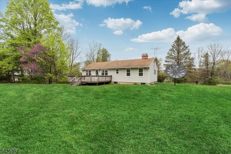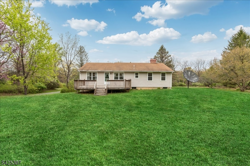 Traditional custom ranch all ready for a quick close on a spectacular 2.81 acre open & level lot. Set back from the road for privacy a long driveway takes you to this amazing home. A walkway leads you to the covered front porch. Step inside to the welcoming foyer with coat closet opening to the large living room with hardwood floors & picture window. A desirable open concept has the living room flowing into the wide dining room with another oversized window. The eat-in kitchen features wood cabinetry, stainless steel appliances & door to deck & yard perfect for parties & barbecues. The roomy primary bedroom has hardwood floors, double closets & an en-suite full bath with stall shower & new white vanity. Secondary bedrooms have hardwood floors, ample closet storage & are conveniently located near the main bath with tub shower. Spacious family room centered on a brick surround wood-burning fireplace makes a great recreation or playroom. Attached over-sized 2-car garage. Incredible sprawling lawns surrounded by trees & shrubs for privacy. This tranquil 2.81 acre lot near shopping & dining is also close to commuting Routes 78, 31, 57 & bus/train service. Perfect for outdoorsmen & naturalists this home is located by numerous local parks & recreation areas including the nearby Musconetcong River & Point Mountain Preserve. Popular Lebanon Township school district which includes prestigious Voorhees High School.